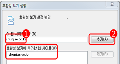 (호환성 보기에 추가한 웹 사이트에 chunjae.co.kr 확인)